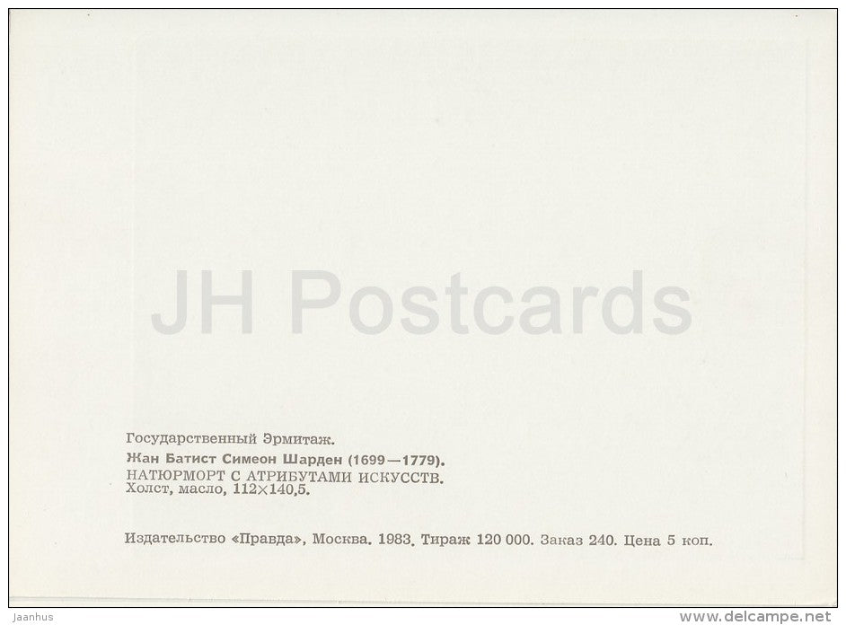 painting by Jean-Baptiste-Simeon Chardin - Still life - figurine - French art - 1983 - Russia USSR - unused