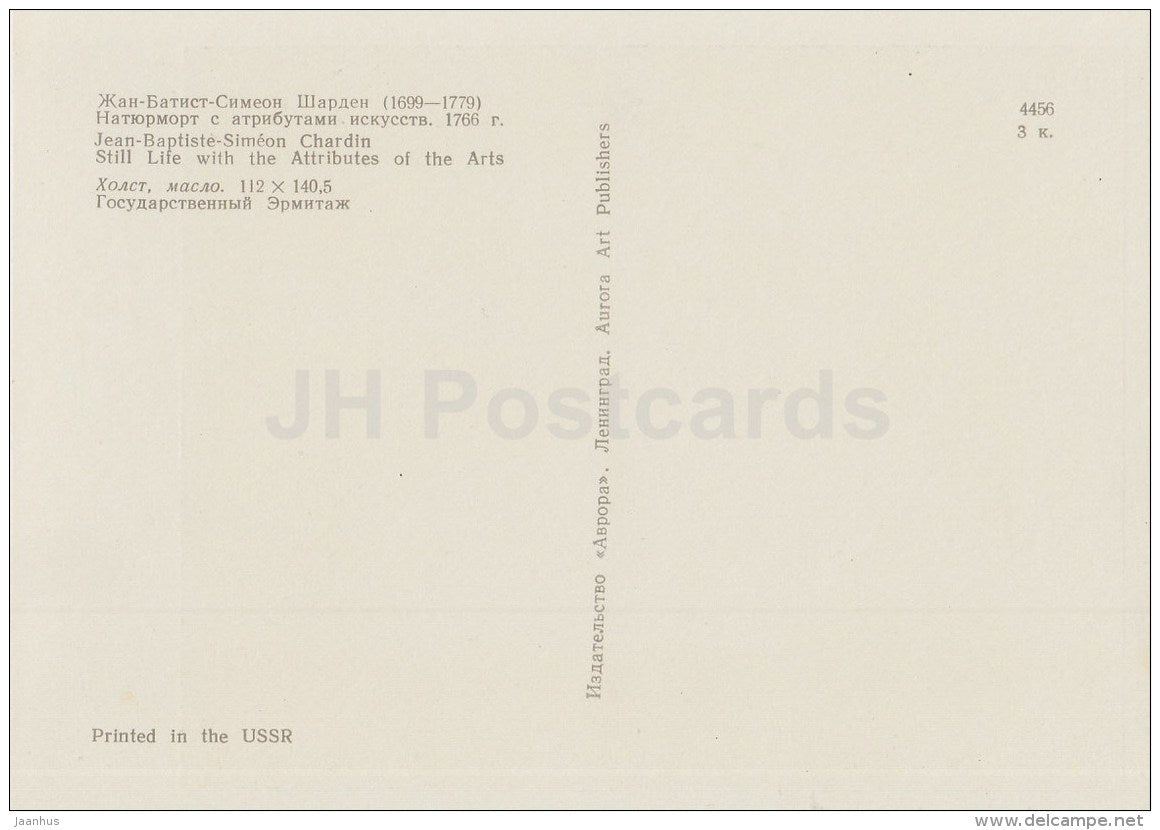 painting by Jean-Baptiste Simeon Chardin - Still Life with Attributes of Art - English Art - 1970 - Russia USSR - unused