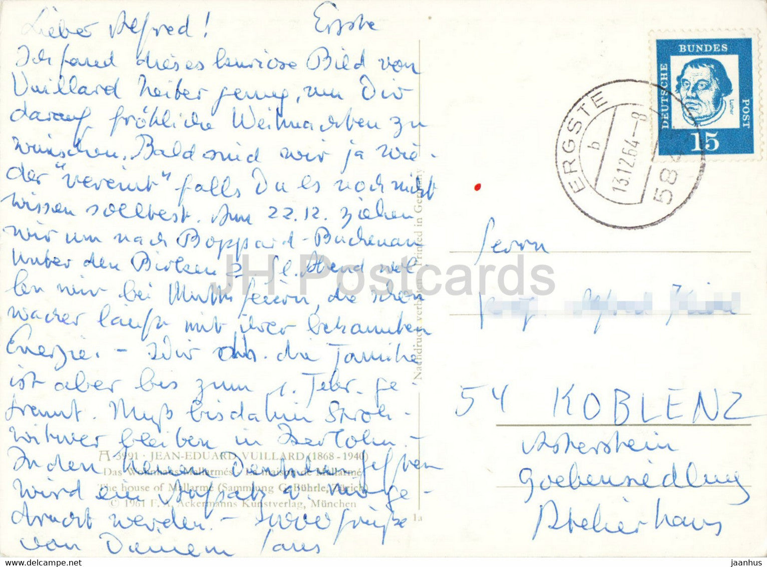 painting by Jean Eduard Vuillard - The House of Mallarme - French art - old postcard - 1964 Germany - used