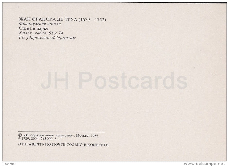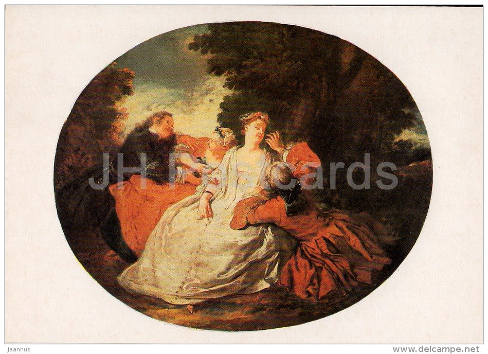 painting by Jean Francois de Troy - Scene in the Park - couples - French art - Russia USSR - 1986 - unused