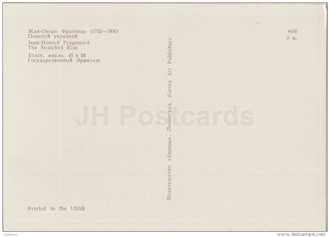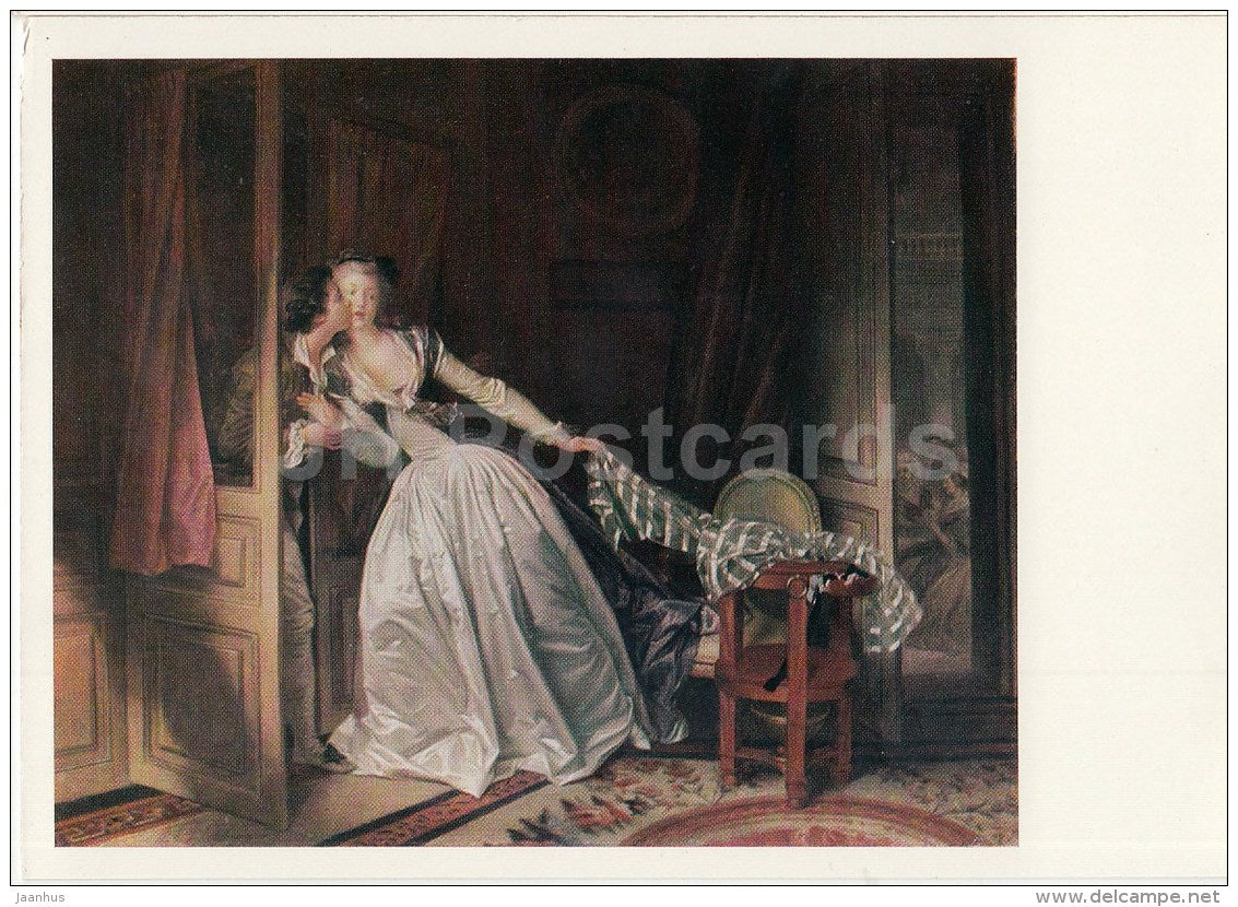 painting by Jean-Honore Fragonard - The Snatched Kiss - French Art - 1970 - Russia USSR - unused