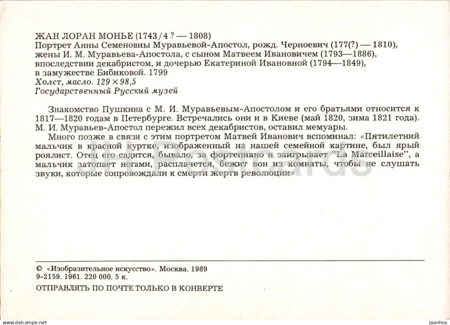 painting by Jean Laurent Mosnier - Portrait of Anna Sergeevna Muravyova - French art - 1989 - Russia USSR - unused