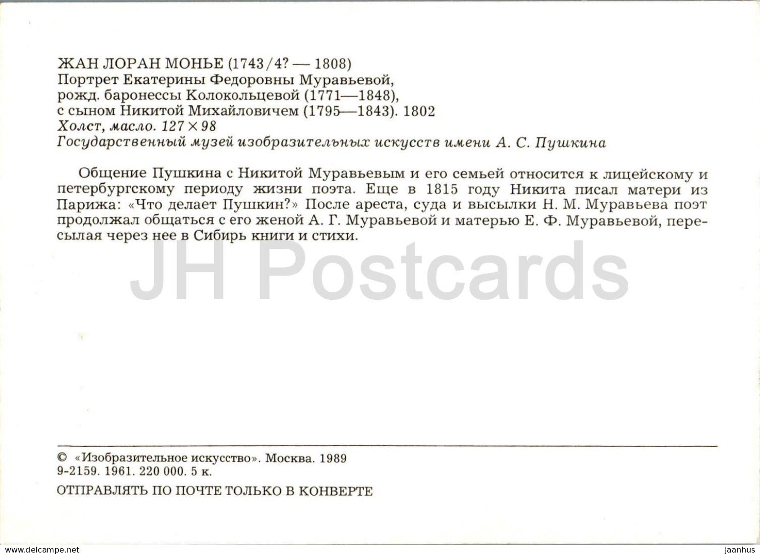 painting by Jean Laurent Mosnier - Portrait of Ekaterina Feodorovna with son - French art - 1989 - Russia USSR - unused