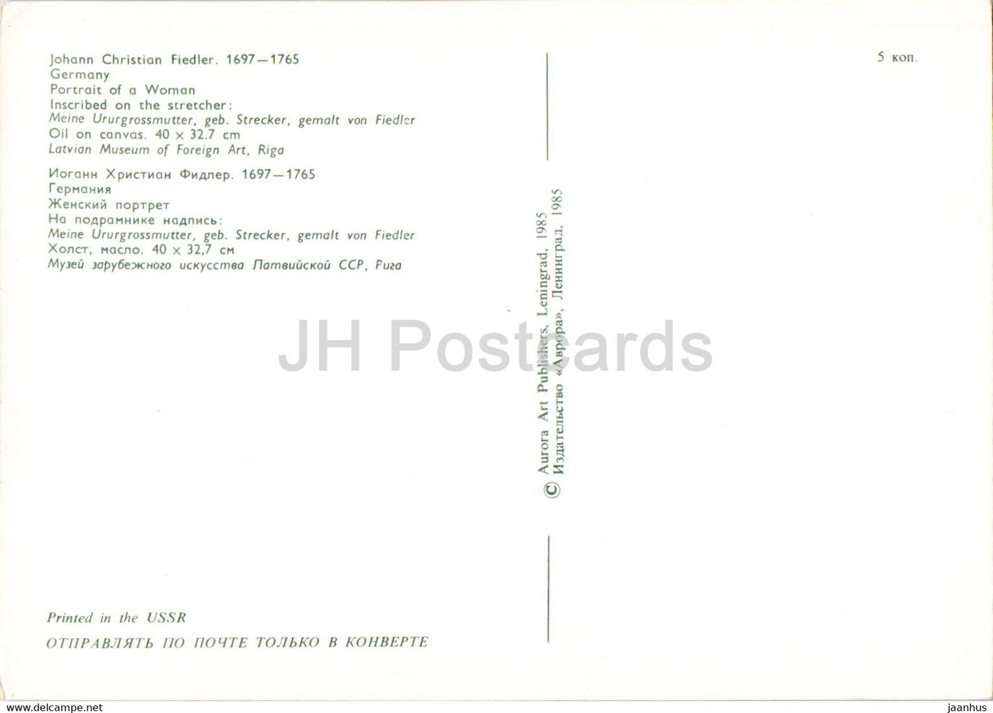 painting by Johann Christian Fiedler - Portrait of a Woman - German art - 1985 - Russia USSR - unused