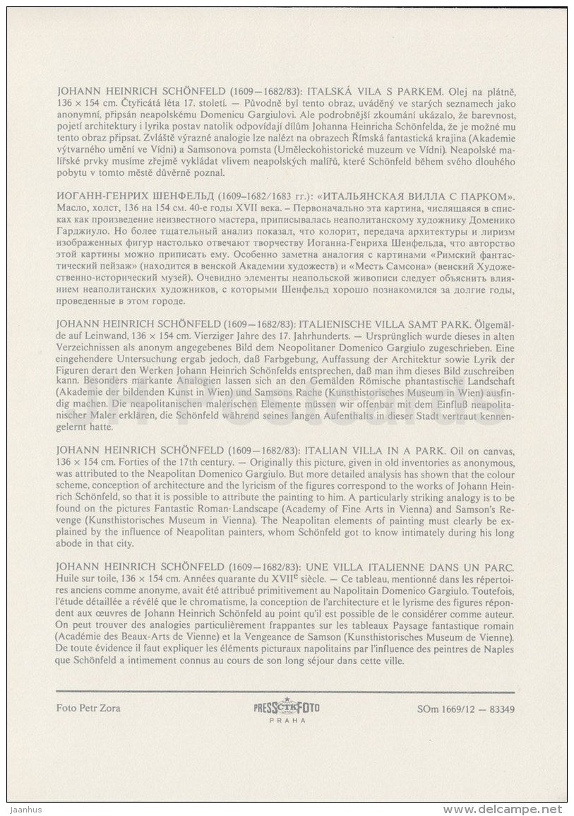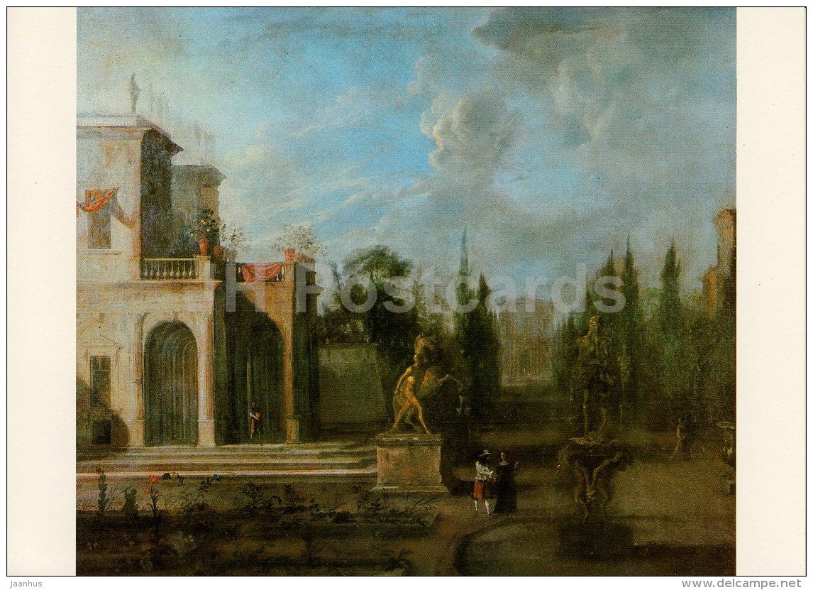 painting by Johann Heinrich Schönfeld - Italian Villa in a Park - Italian art - large format card - Czech - unused