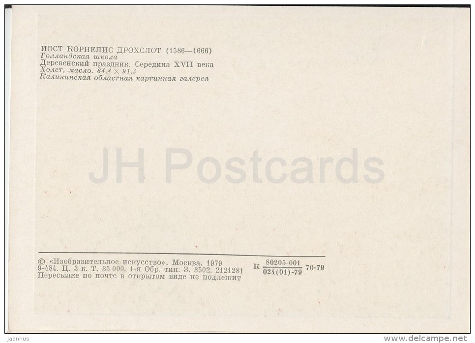 painting by Joost Cornelisz Droochsloot - Village Holiday - Dutch art - Russia USSR - 1979 - unused