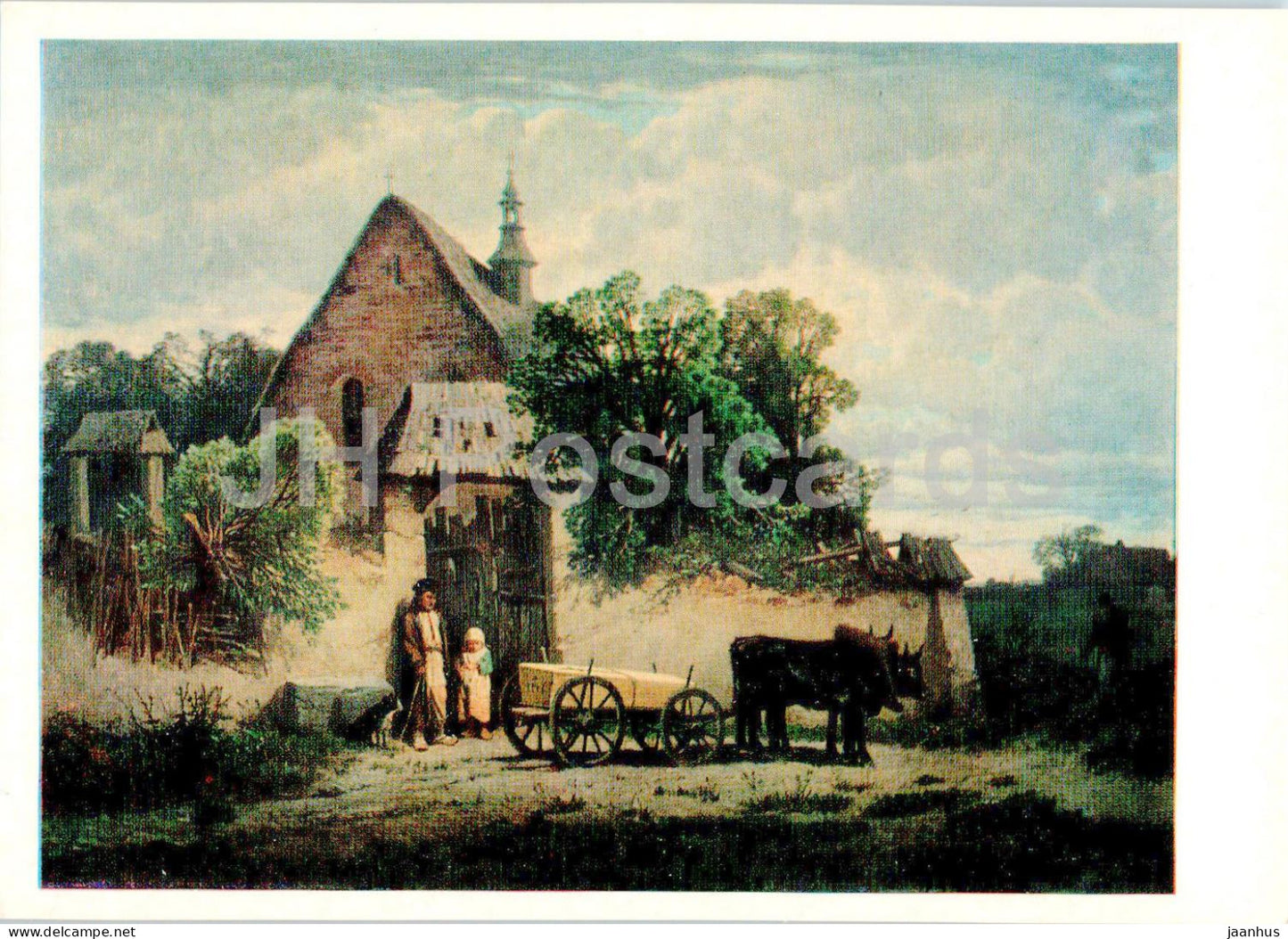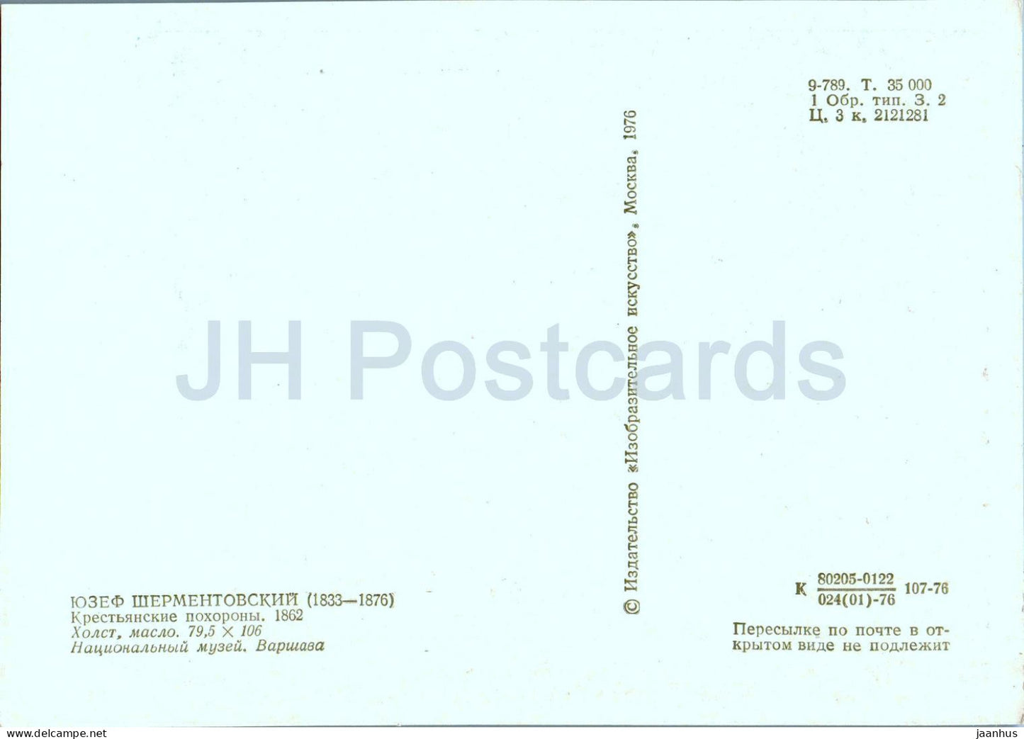 painting by Jozef Szermentowski - Peasant funeral - Polish art - 1976 - Russia USSR - unused
