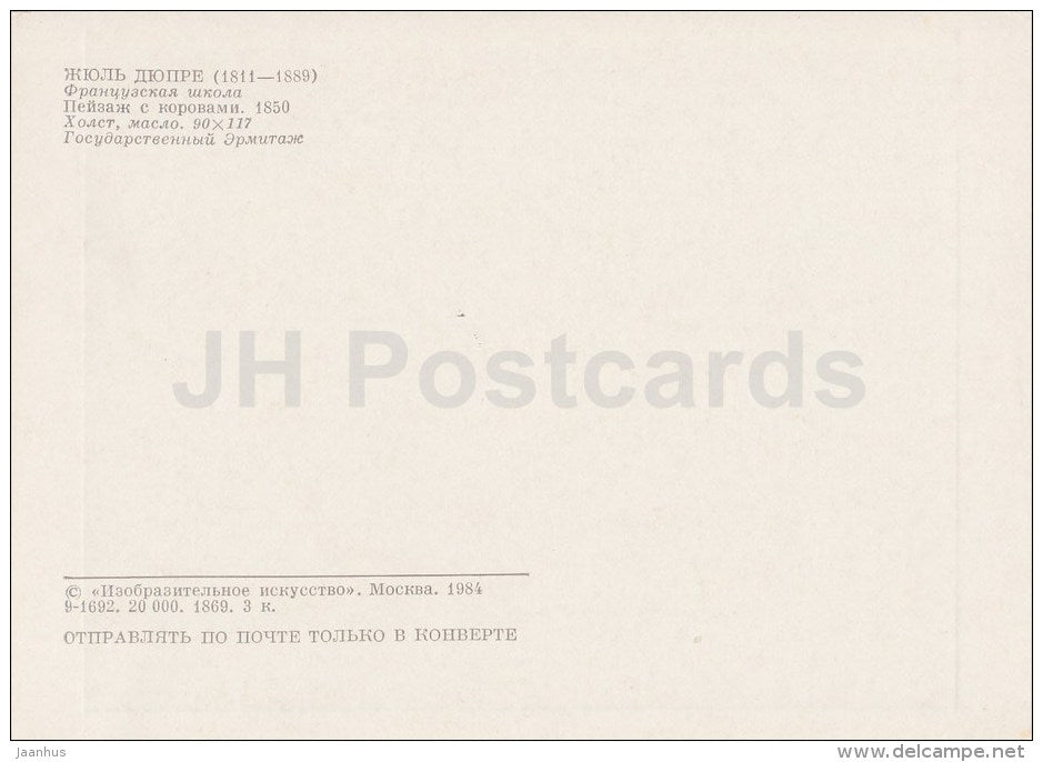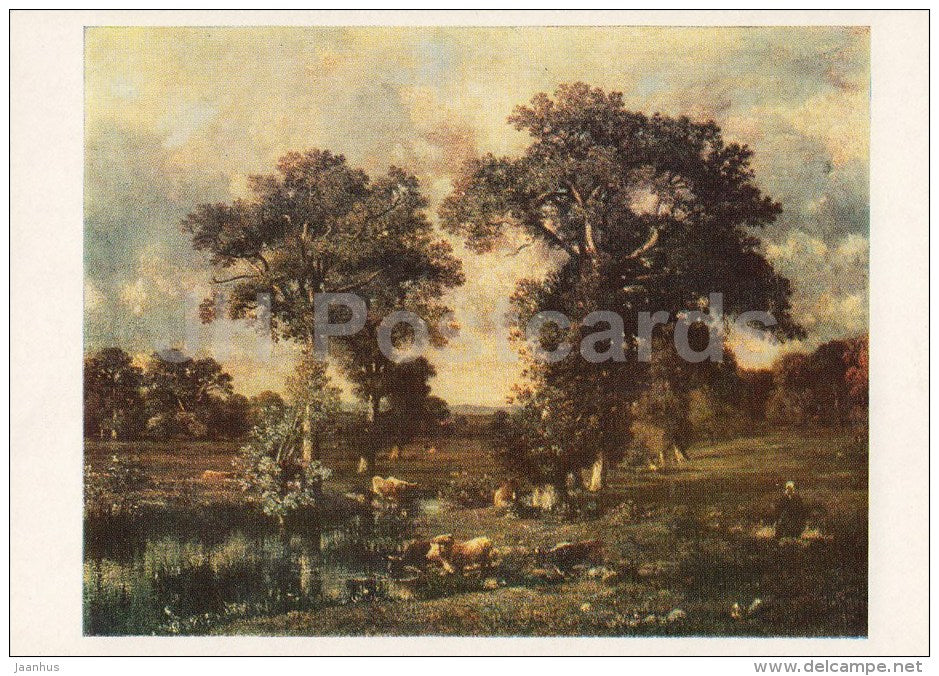 painting by Jules Dupre - Landscape with Cows , 1850 - French Art - 1984 - Russia USSR - unused