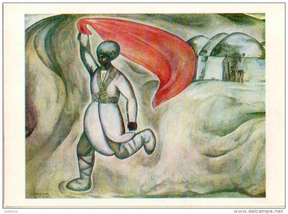 painting by K. Bekmuradov - News , 1967 - red flag - turkmenian art - unused