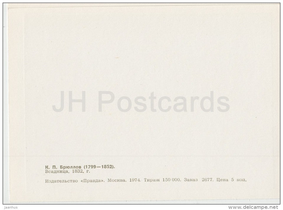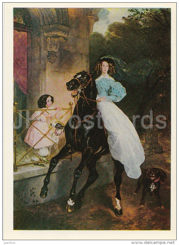 painting by K. Bryullov - Horsewoman , 1832 - horse - dog - Russian art - 1974 - Russia USSR - unused