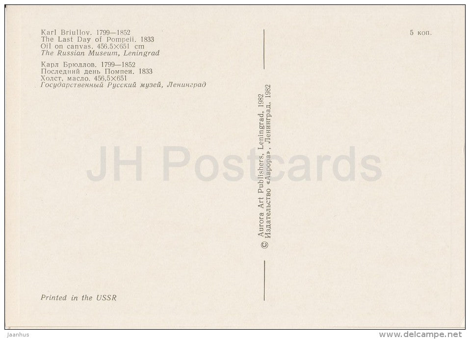 painting by K. Bryullov - The Last Day of Pompeii , 1833 - Russian art - Russia USSR - 1982 - unused