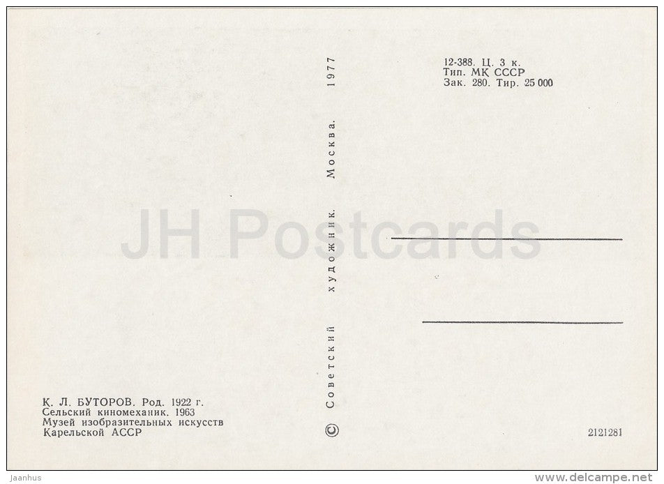 painting by K. Butorov - Rural projectionist , 1963 - woman - boat - Karelian art - Russia USSR - 1977 - unused