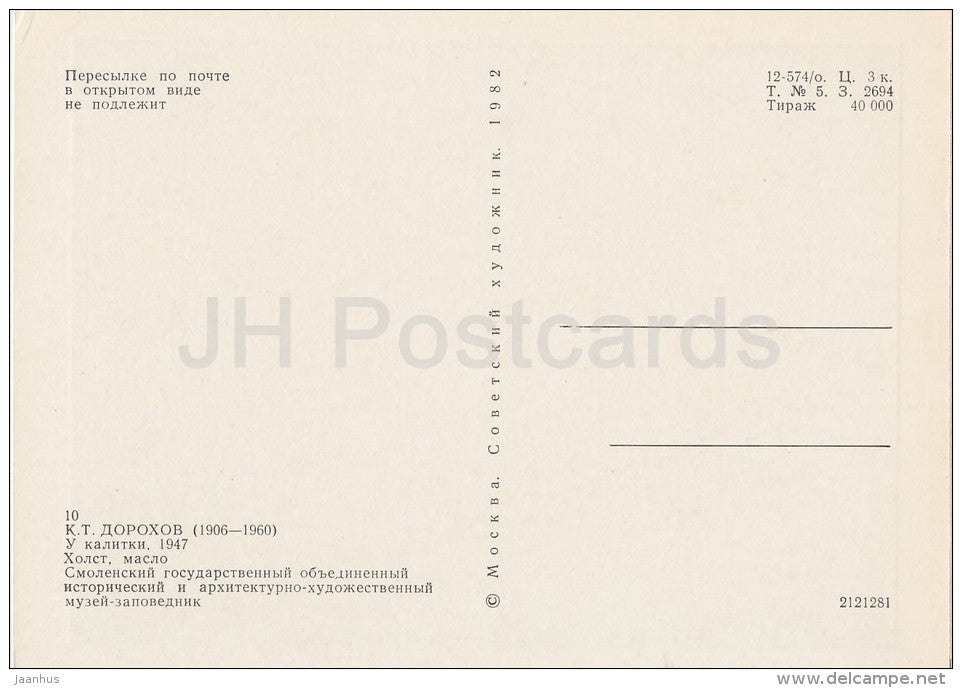painting by K. Dorokhov - At the gate , 1947 - boys - Russian art - 1982 - Russia USSR - unused