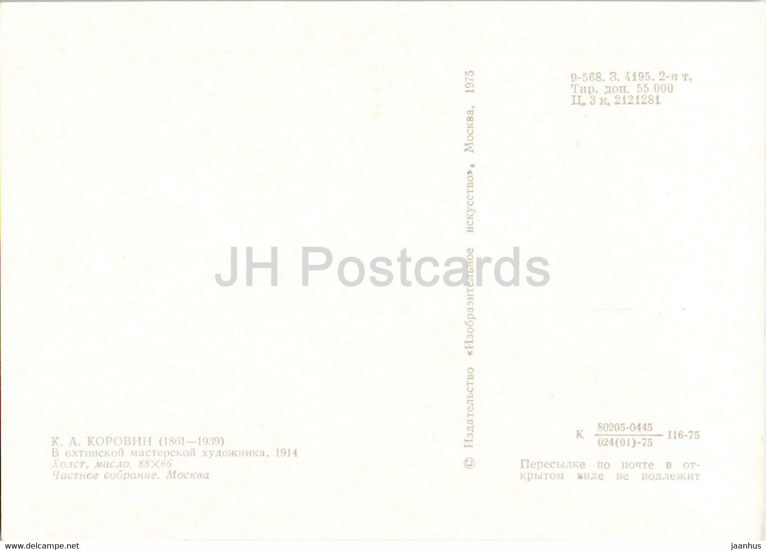 painting by K. Korovin - Artist's workshop in Okhta - Russian art - 1975 - Russia USSR - unused