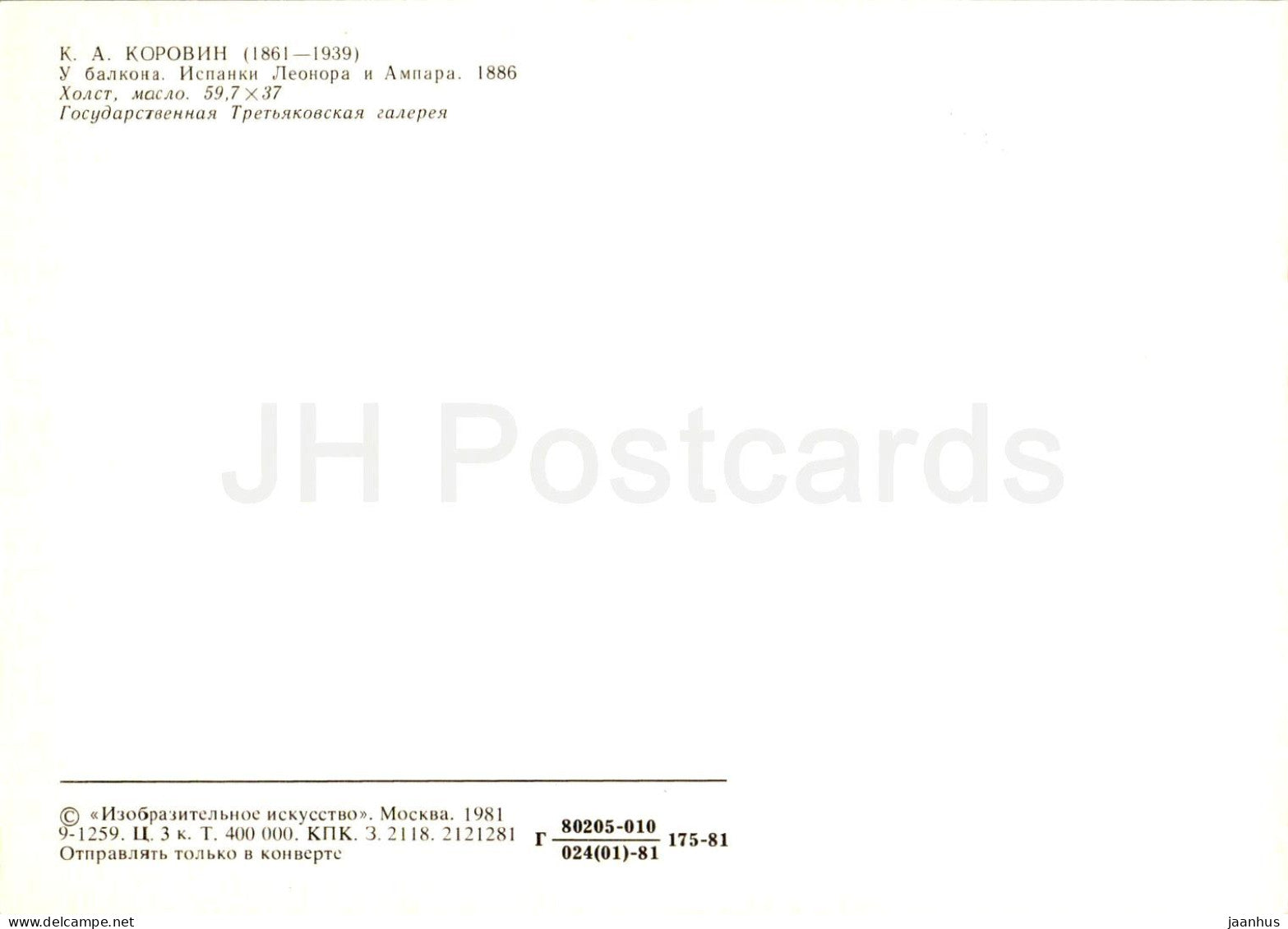 painting by K. Korovin - At the Balcony. The Spanish Women - Russian art - 1981 - Russia USSR - unused