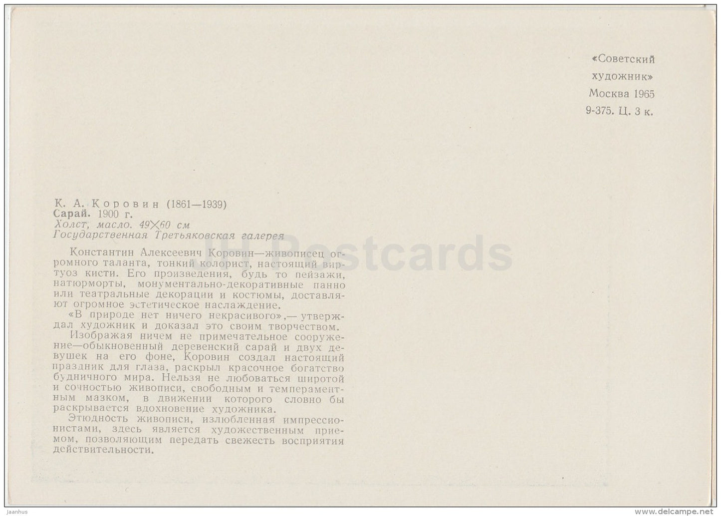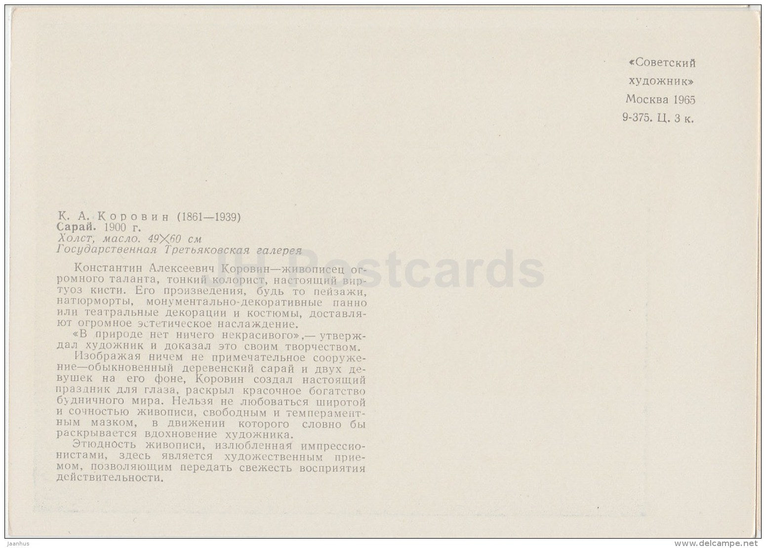 Painting by. K. Korovin - The Barn , 1900 - Russian art - 1965 - Russia USSR - unused