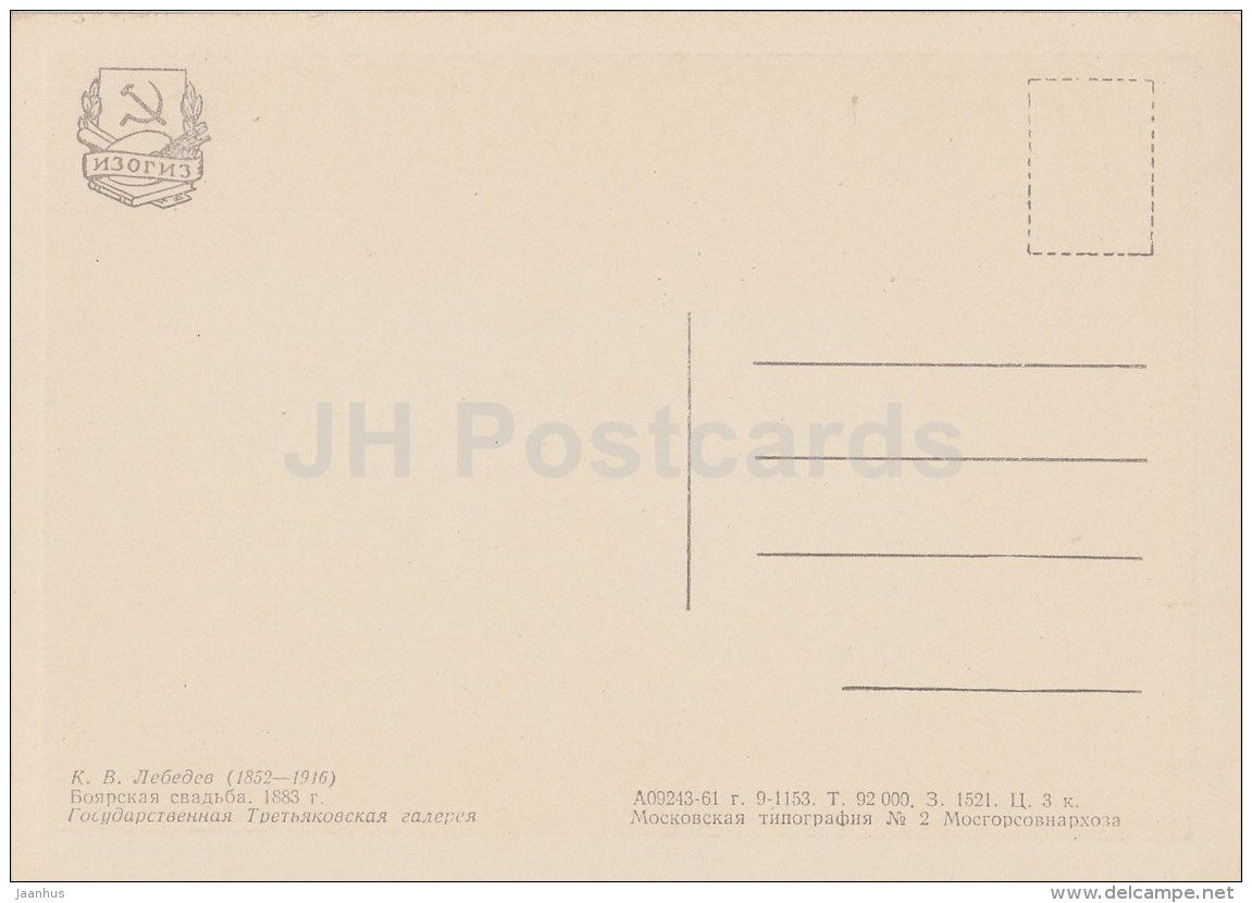 Painting by K. Lebedev - Boyar wedding , 1883 - Russian art - Russia USSR - 1961 - unused
