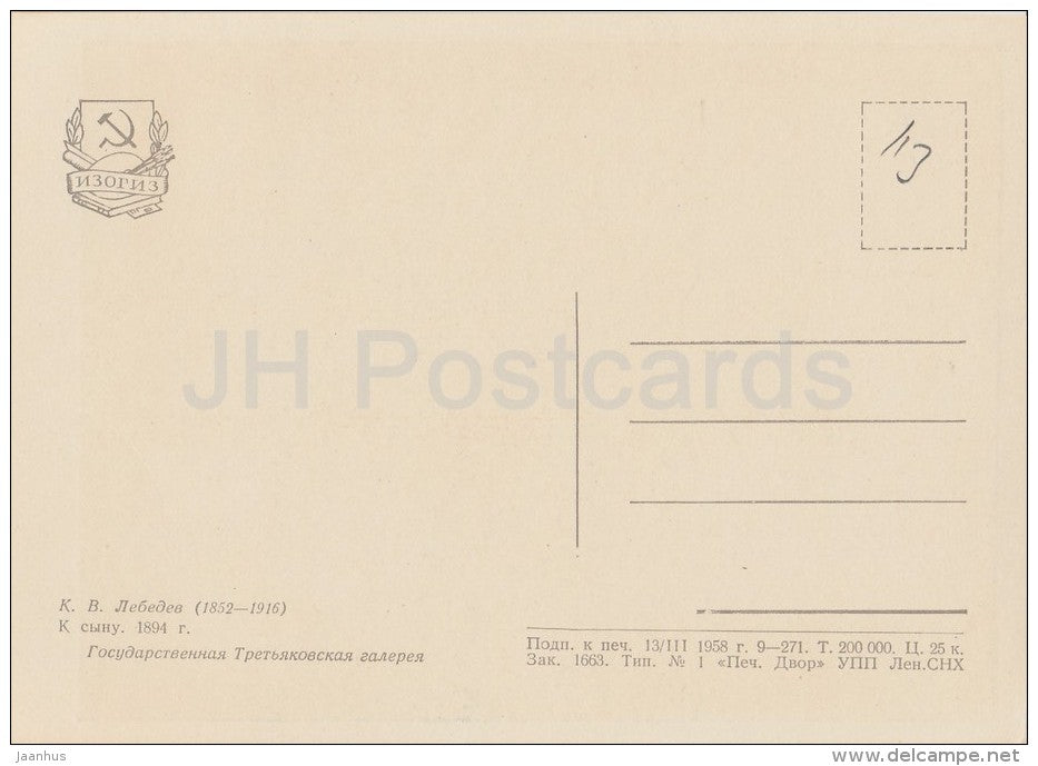 painting by K. Lebedev - Visiting the Son , 1894 - Russian art - 1958 - Russia USSR - unused