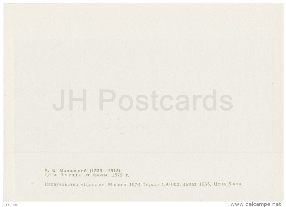 painting by K. Makovsky - Children running from a thunderstorm , 1872 - Russian art - 1976 - Russia USSR - unused