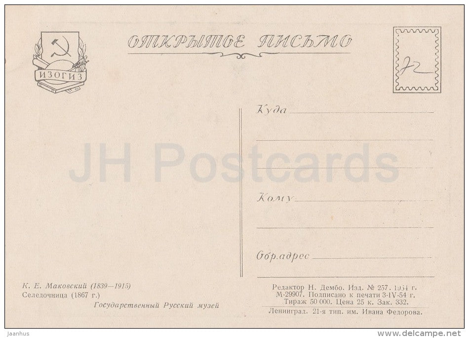 painting by K. Makovsky - Fish Seller , 1867 - woman - Russian art - 1954 - Russia USSR - unused