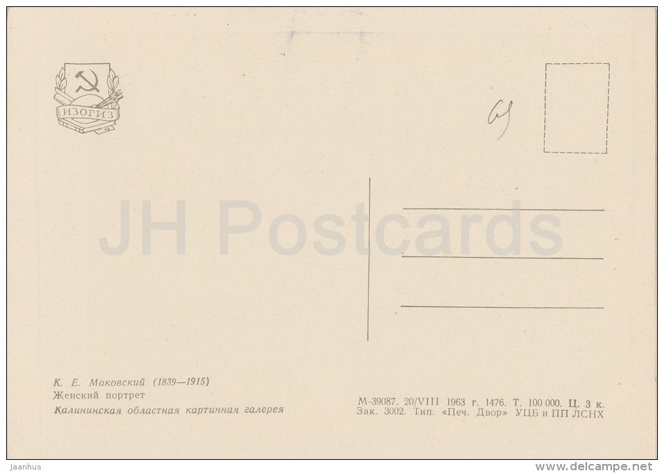 painting by K. Makovsky - Portrait of a Woman - Russian art - 1963 - Russia USSR - unused
