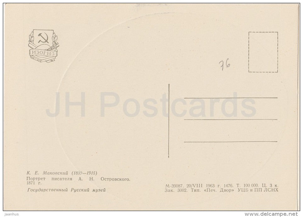 painting by K. Makovsky - Portrait of Russian Writer A. Ostrovsky , 1871 - Russian art - 1963 - Russia USSR - unused