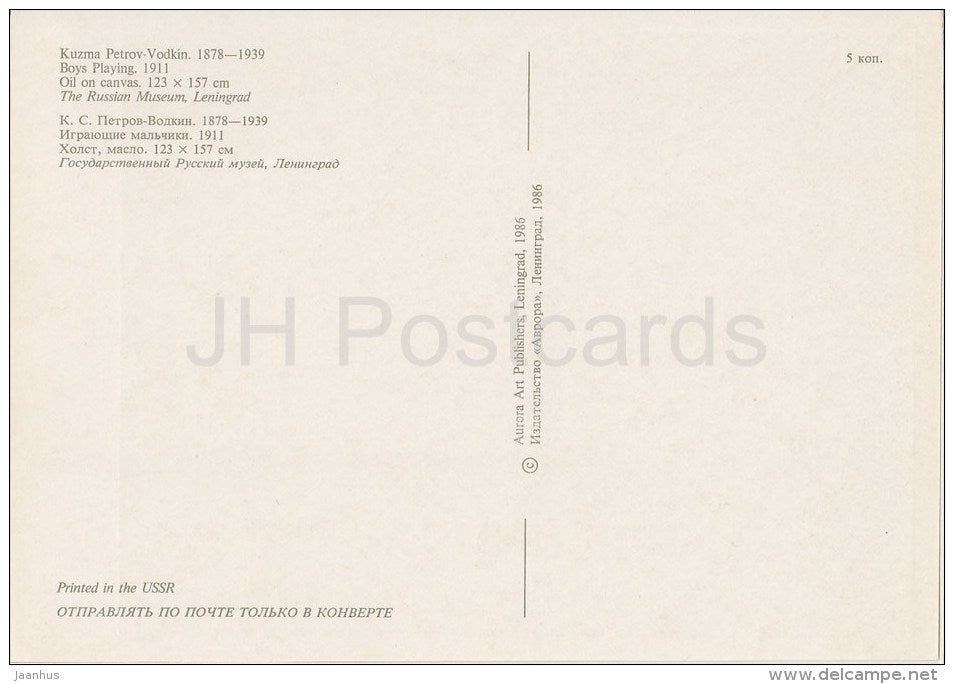 painting by K. Petrov-Vodkin - Boys Playing , 1911 - nude - naked boys - Russian art - 1986 - Russia USSR - unused