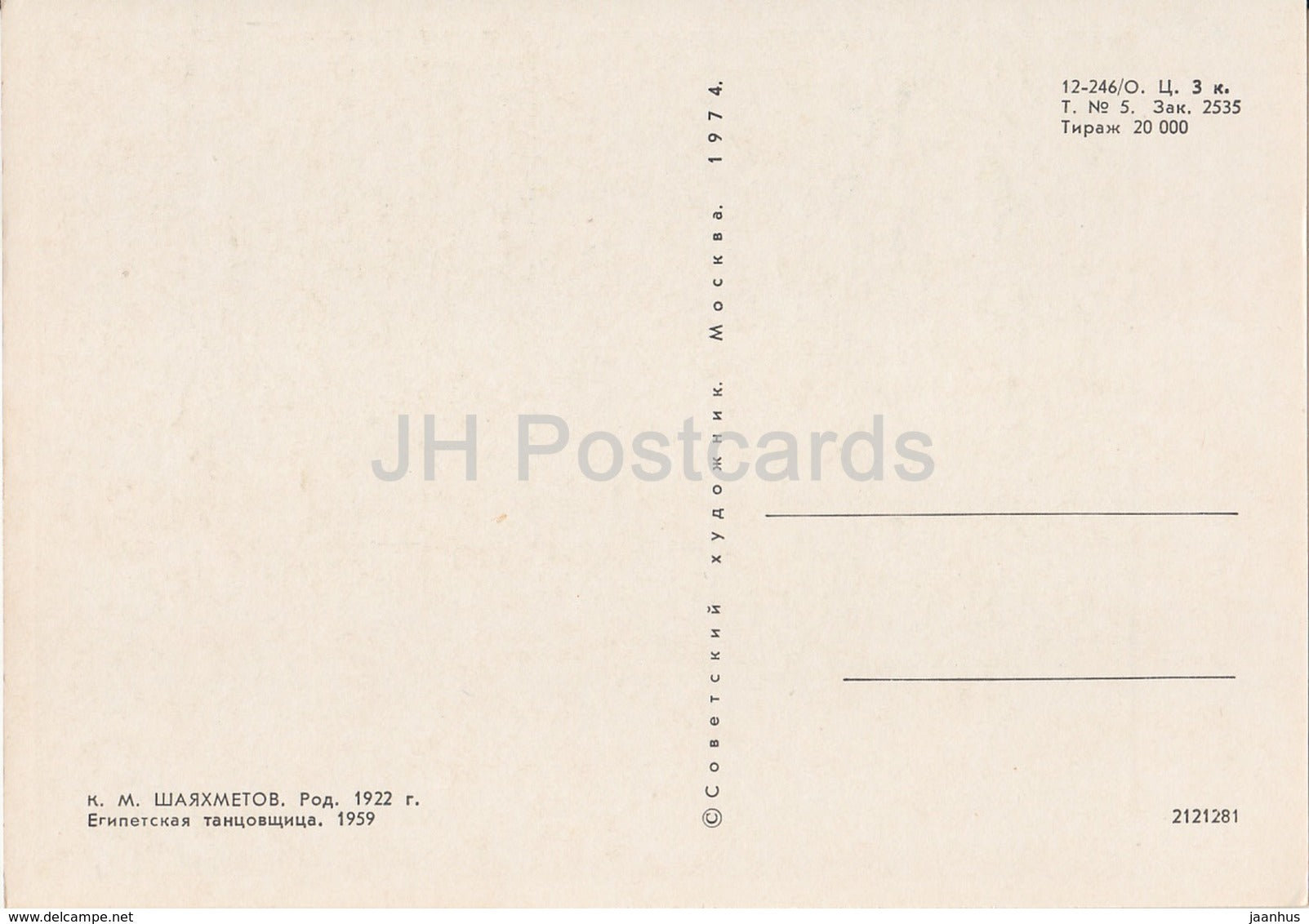 painting by K . Shayakhmetov - Egyptian Dancer - Kazakhstan art - 1974 - Russia USSR - unused
