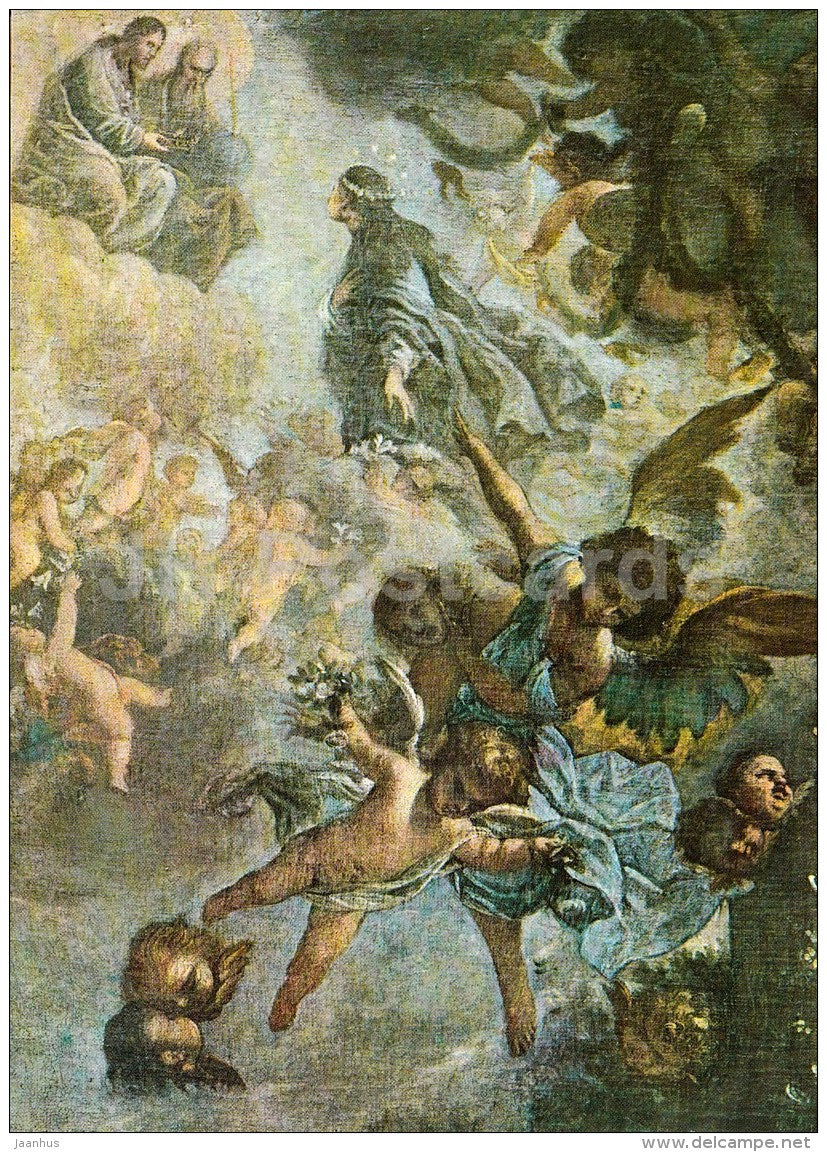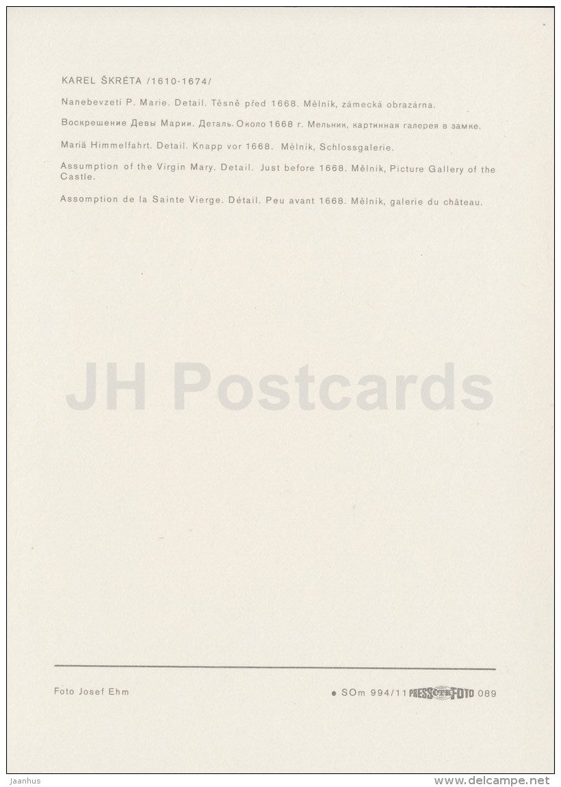 painting by Karel Skreta - Assumption of the Virgin Mary , fragment - Czech art - large format card - Czech - unused