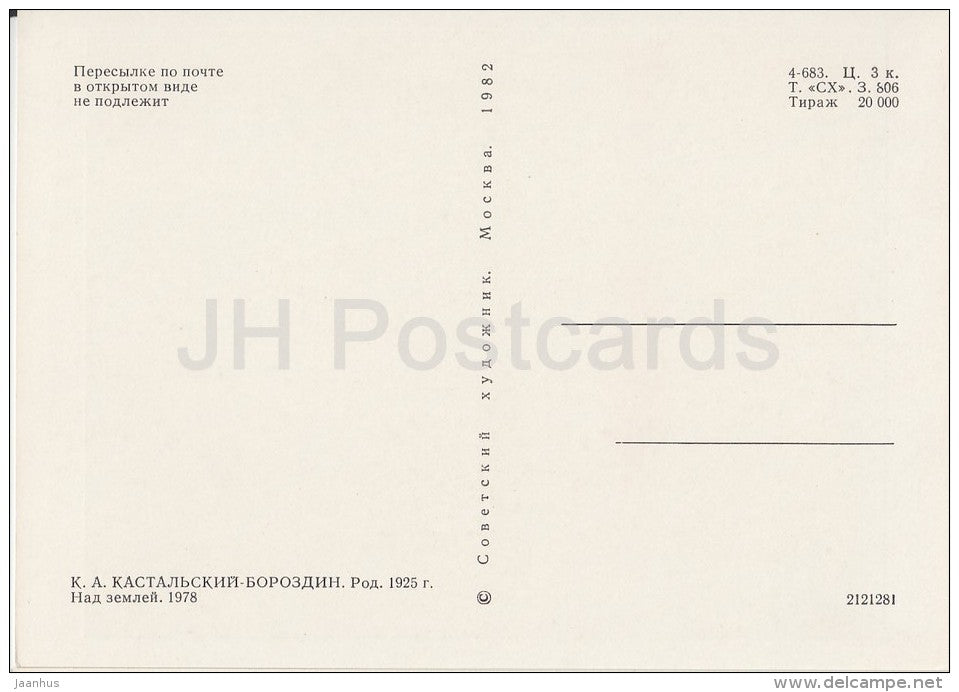 painting by Kastalsky-Borozdin - Over the Land , 1978 - Russian art - 1982 - Russia USSR - unused