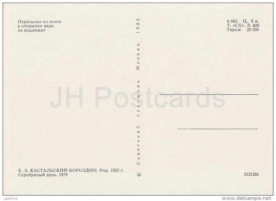 painting by Kastalsky-Borozdin - Silver Day , 1979 - Russian art - 1982 - Russia USSR - unused