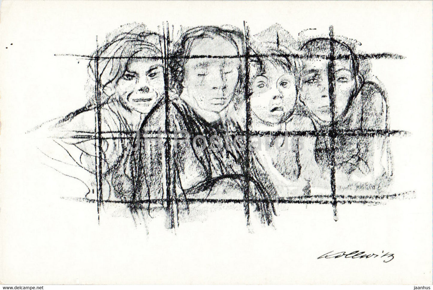 painting by Kathe Kollwitz - Hinter Gittern - Behind Bars - German art - Germany - unused