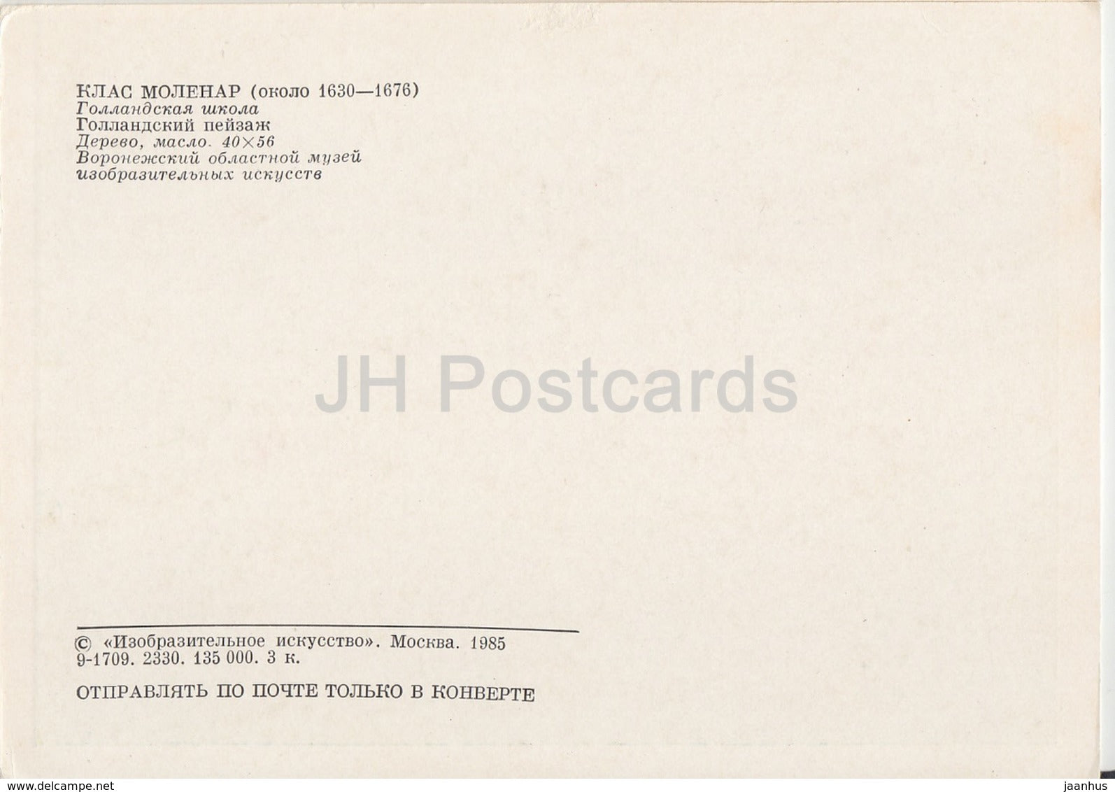 painting by Klaes Molenaer - Landscape of Netherlands - Dutch art - 1985 - Russia USSR - unused