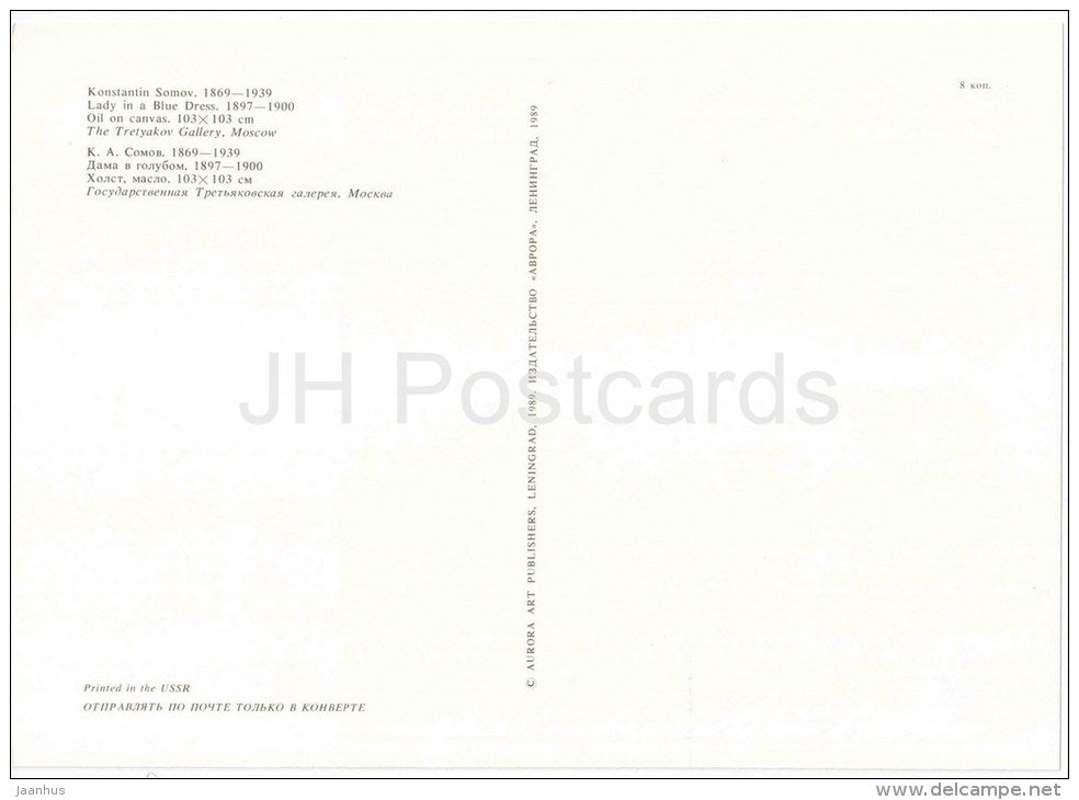 painting by Konstantin Somov , Lady in a Blue Dress , 1897-1900 - book - large format postcard - russian art - unused