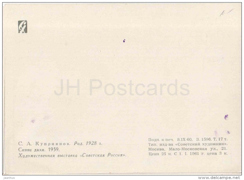 painting by Kupriyanov - Blue Distance , 1959 - sea - russian art - unused