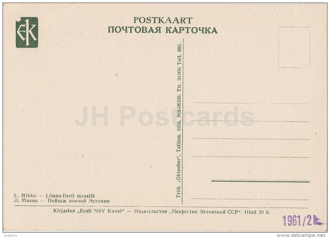 Painting by L. Mikko - Landscape in South Estonia - Estonian art - Estonia USSR - 1958 - unused
