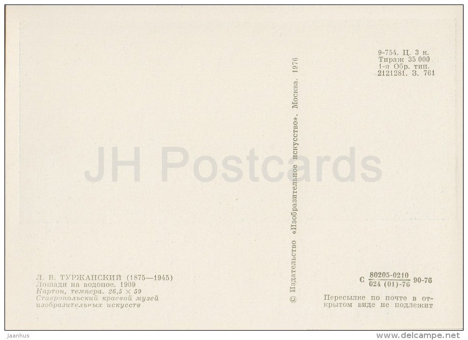 painting by L. Turzhansky - Horses at the watering hole , 1909 - horses - Russian art - Russia USSR - 1976 - unused