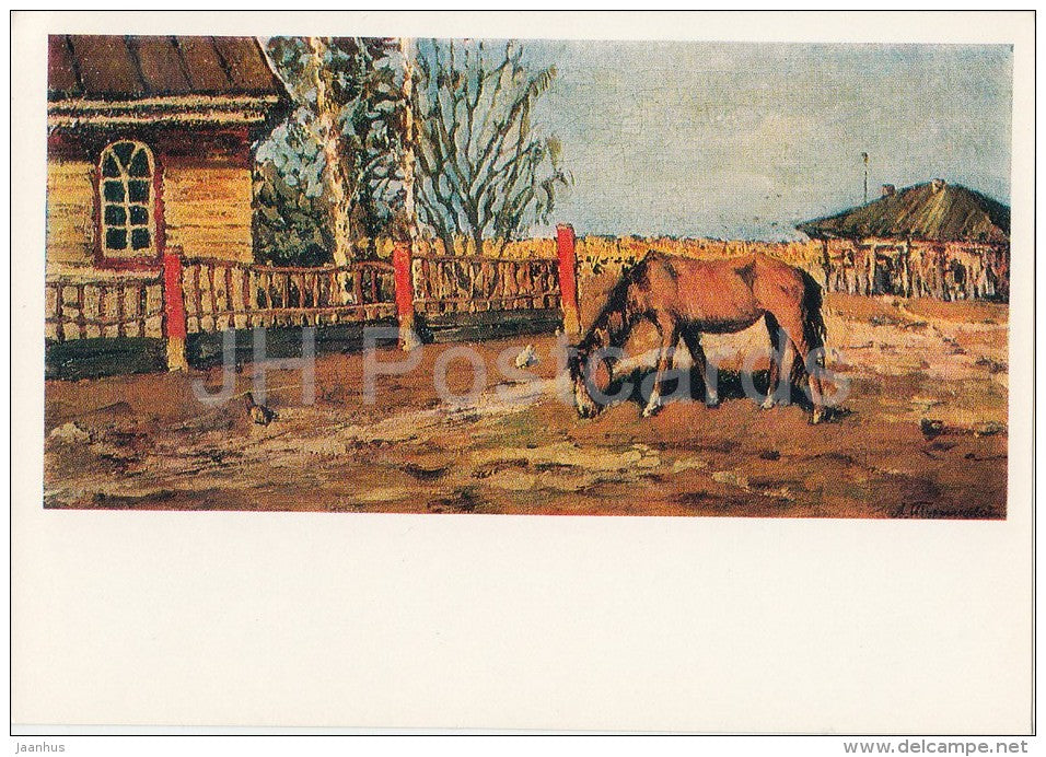 painting by L. Turzhansky - In the outskirts , 1912 - horse - Russian art - 1976 - Russia USSR - unused