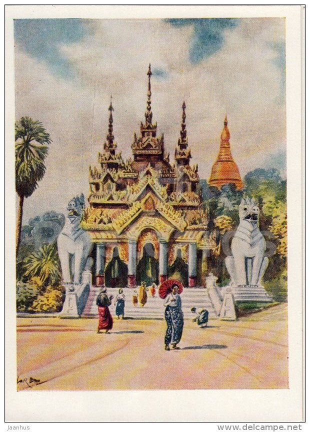 painting by Lar Ban - Near Pagoda - Burmese Art - 1964 - Russia USSR - unused