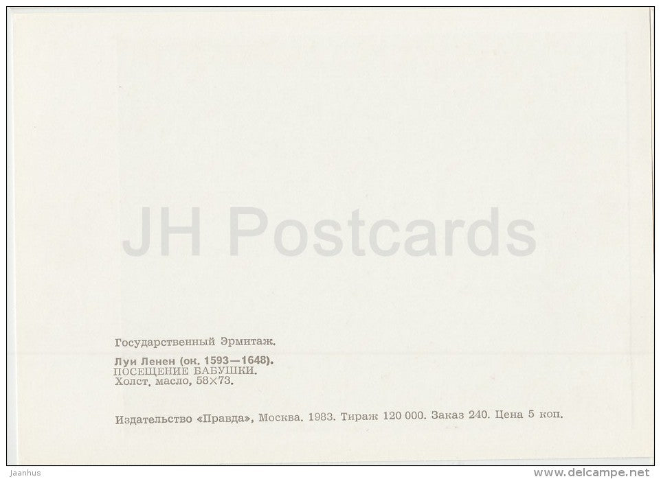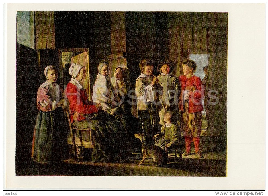 painting by Le Nain - Visiting Grandmother - children - dog - French art - 1983 - Russia USSR - unused
