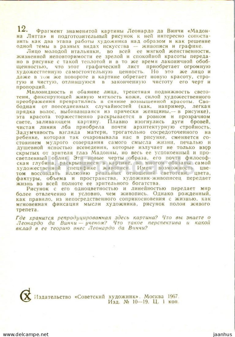 painting by Leonardo da Vinci - sketch - Madonna Litta - Italian art - 1967 - Russia USSR - unused