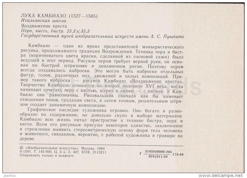 painting by Luca Cambiaso - The erection of the cross - Italian art - Russia USSR - 1984 - unused