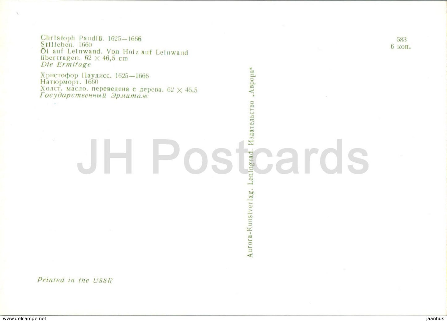 painting by Lucas Christopher Paudiss - Still Life - German art - 1972 - Russia USSR - unused