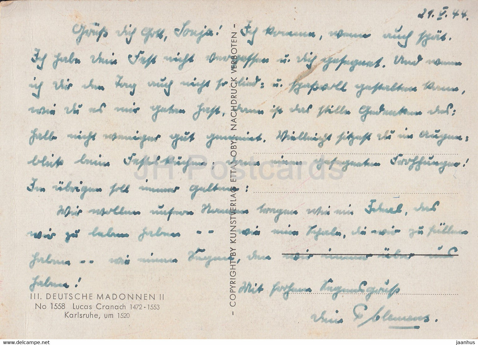 painting by Lucas Cranach - Deutsche Madonnen II - 1558 - German art - 1944 - old postcard - Germany DDR - used