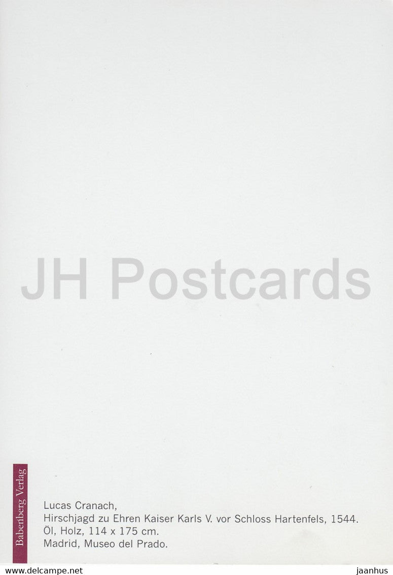 painting by Lucas Cranach - Hirschjagd zu Ehren Kaiser Karls V vor Schloss Hartenfels - German art - Germany - unused