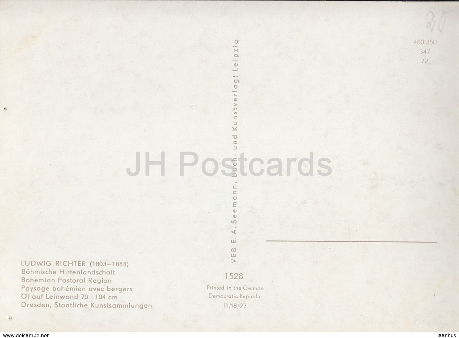 painting by Ludwig Richter - Bohmische Hirtenlandschaft - Bohemian Pastoral Region - German art - Germany DDR - unused