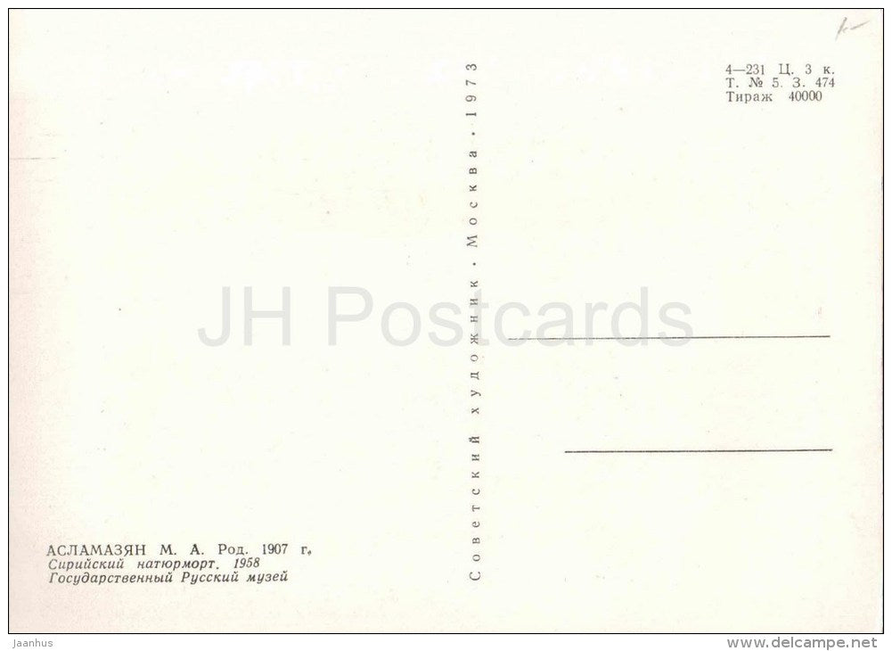 painting by M. Aslamazyan - Syrian Still Life , 1958 - camel - banana - armenian art - unused