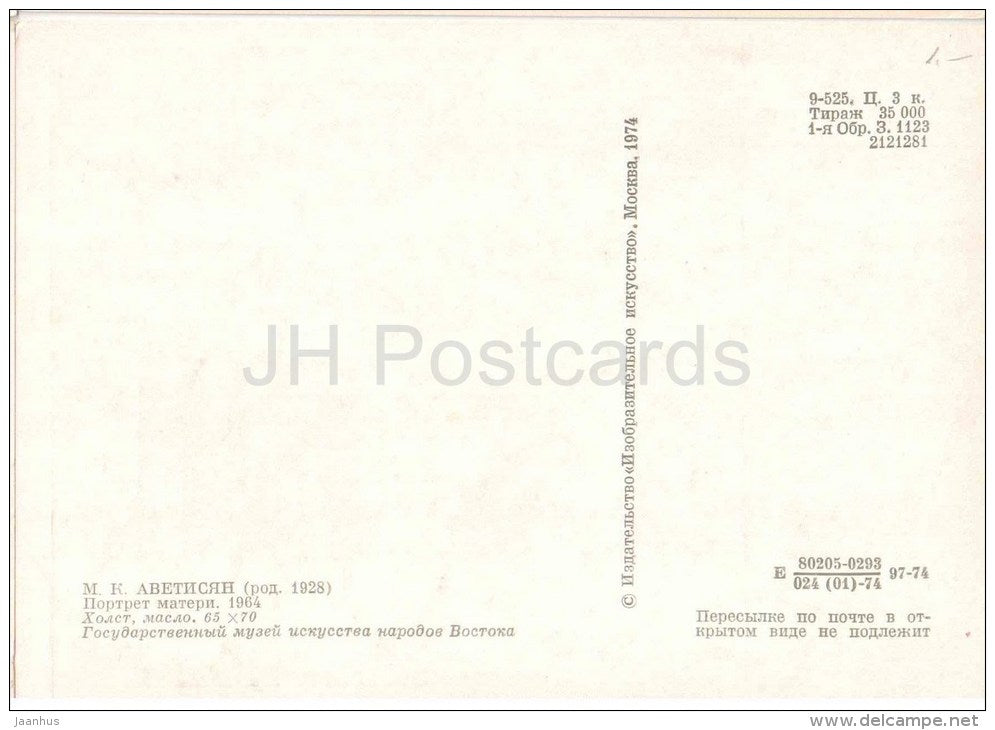 painting by M. Avetisyan - Masters , 1977 - spinning wheel - armenian art - unused