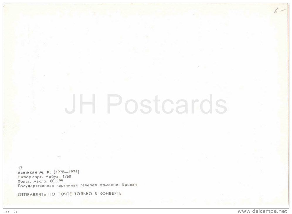 painting by M. Avetisyan - Still Life . Watermelon , 1960 - armenian art - unused