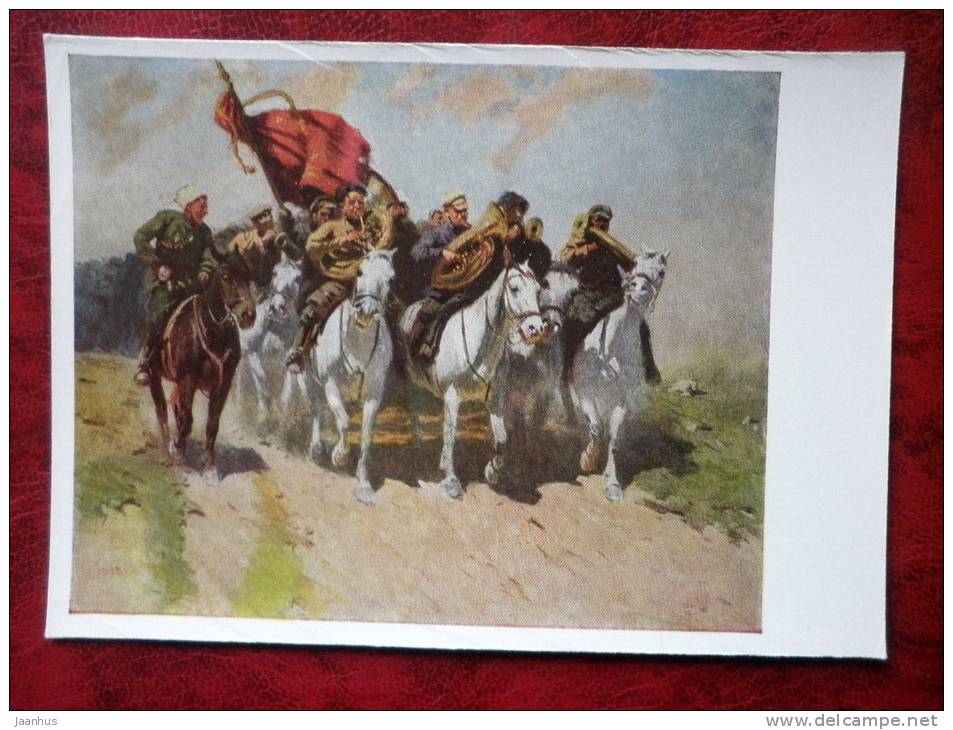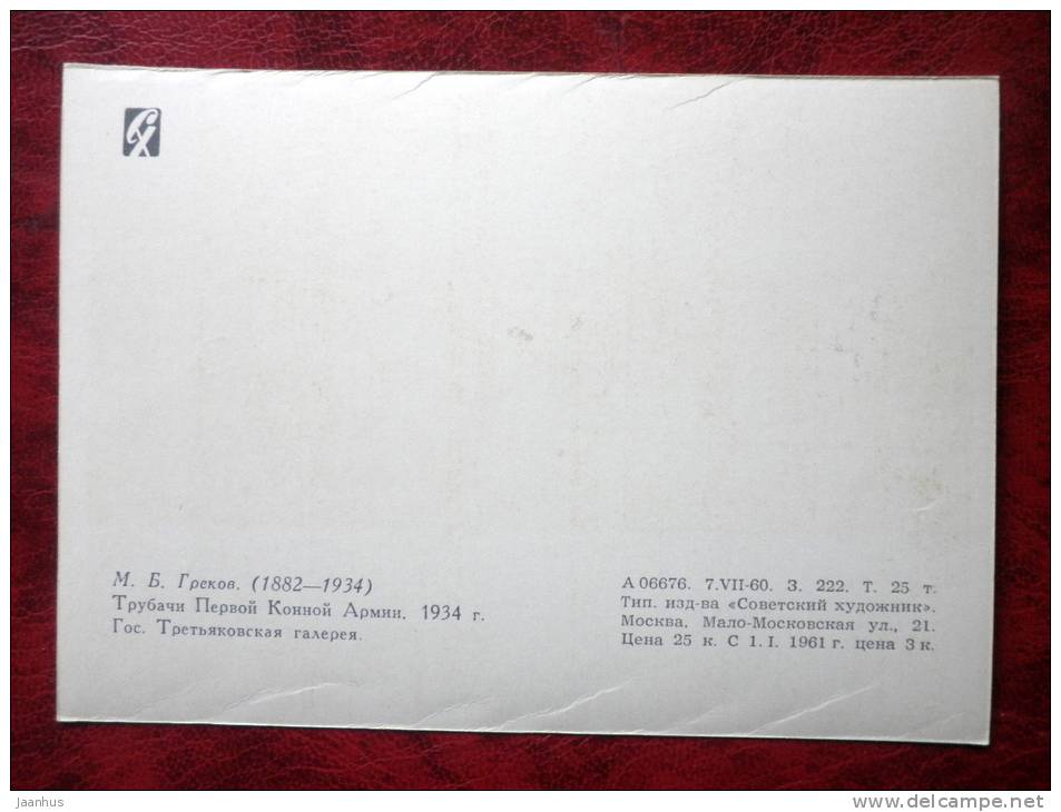 Painting by M. B. Grekov - First Cavalry trumpeters , 1934 - horses - soldiers - russian art - unused